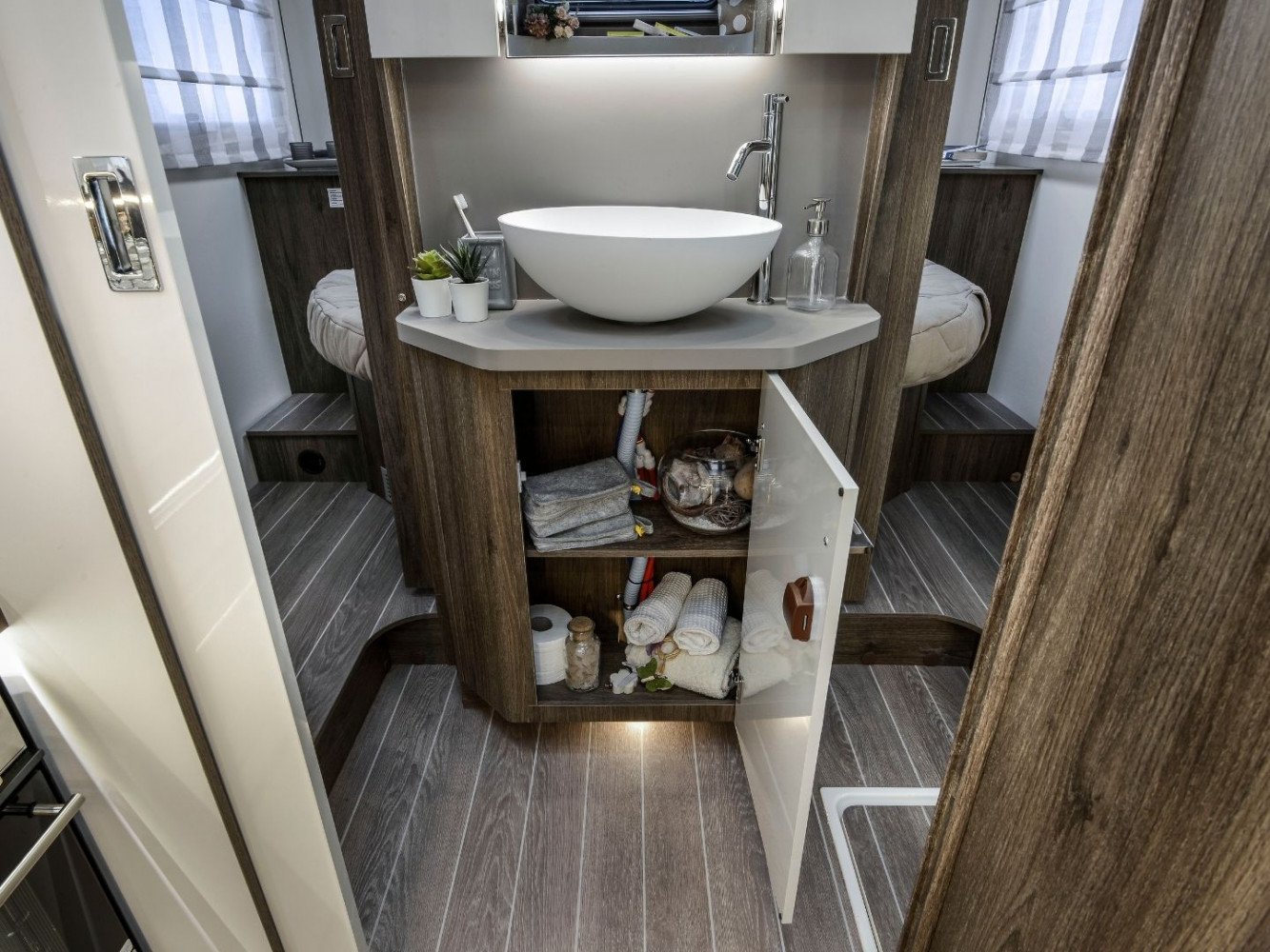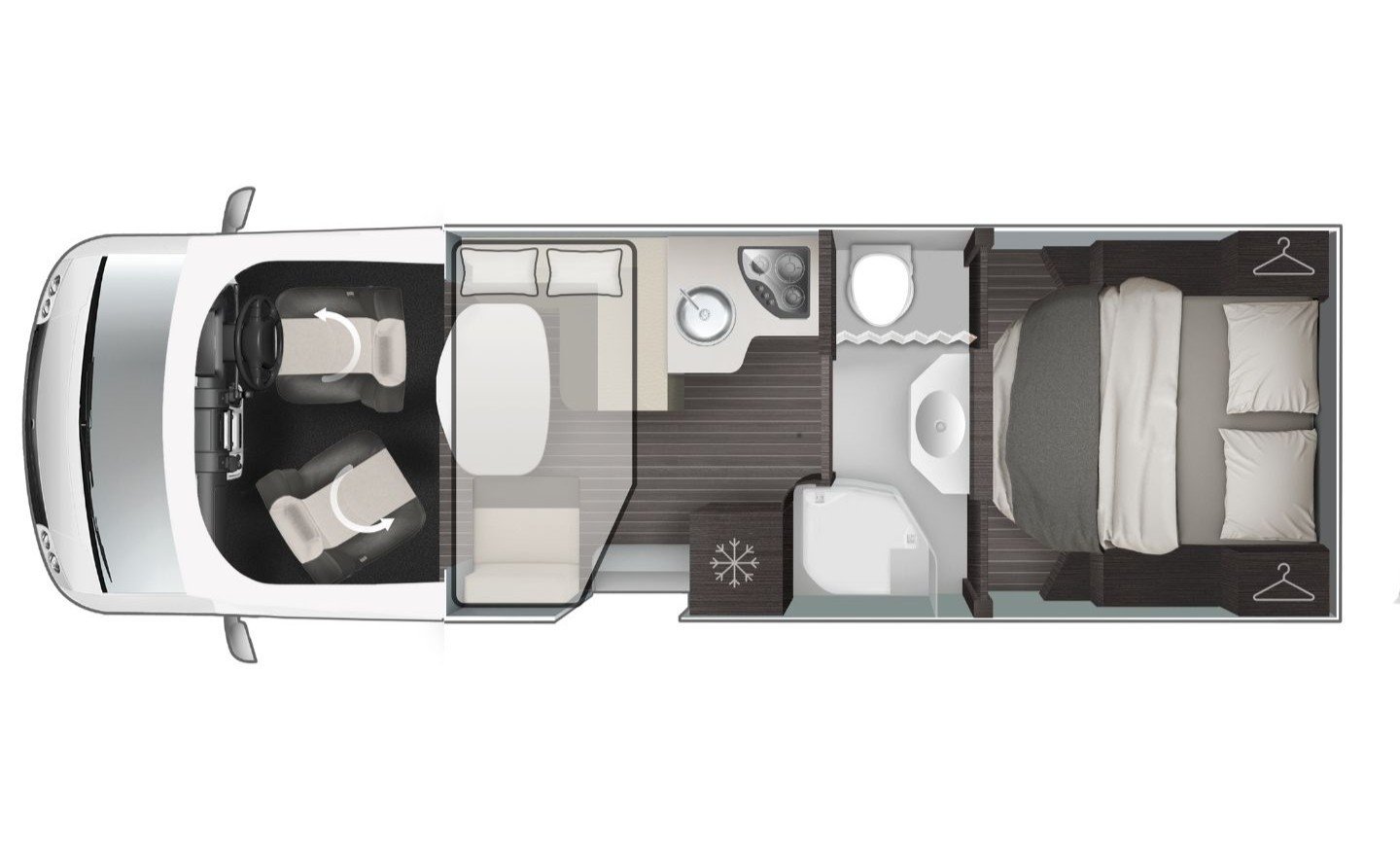 The Da Vinci is the pinnacle of luxury amongst our hire fleet. With its rear island double bed and split central washroom, it feels no different to being in a prestige 5-star hotel.
