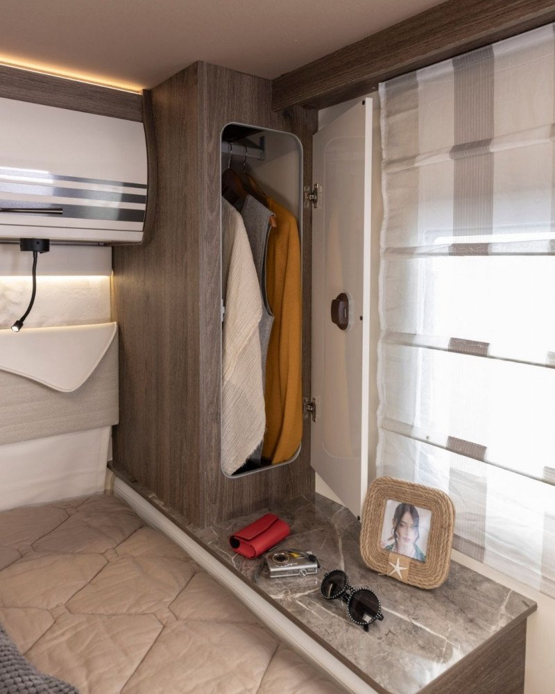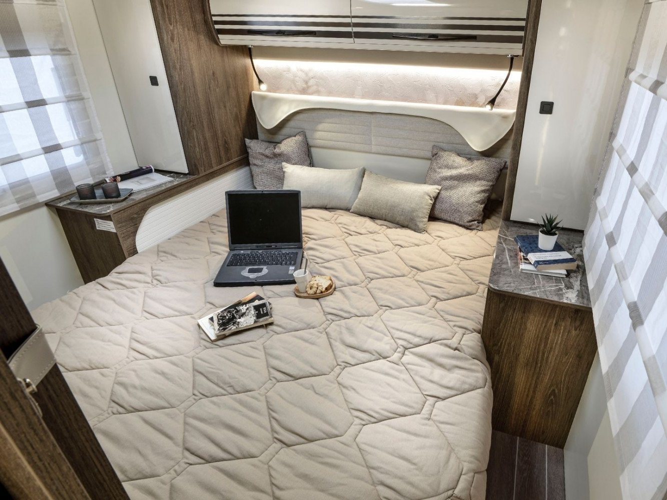 The Da Vinci’s flagship feature is its rear island double bed. This is a luxury sleeping area built for couples, with the wide mattress providing maximum comfort, and space on either side for individual wardrobes.