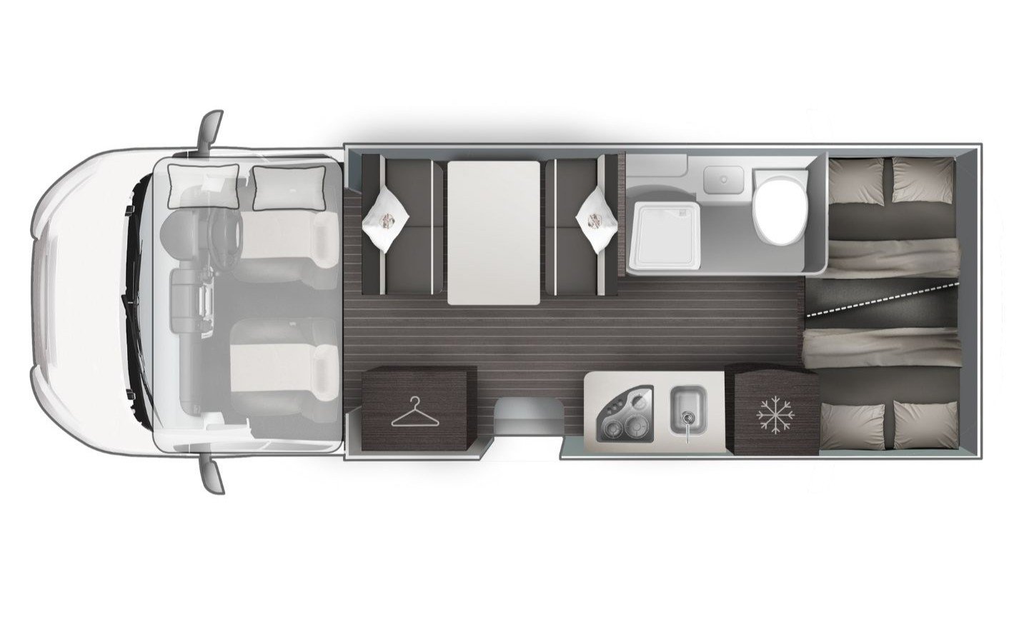 As our hire fleet’s only 5 berth, the Lomond allows bigger families and groups to get a taste of motorhome life. The spacious interior and unique sleeping arrangements (that are easy to set up) mean the Lomond is one of our most popular motorhomes each year.