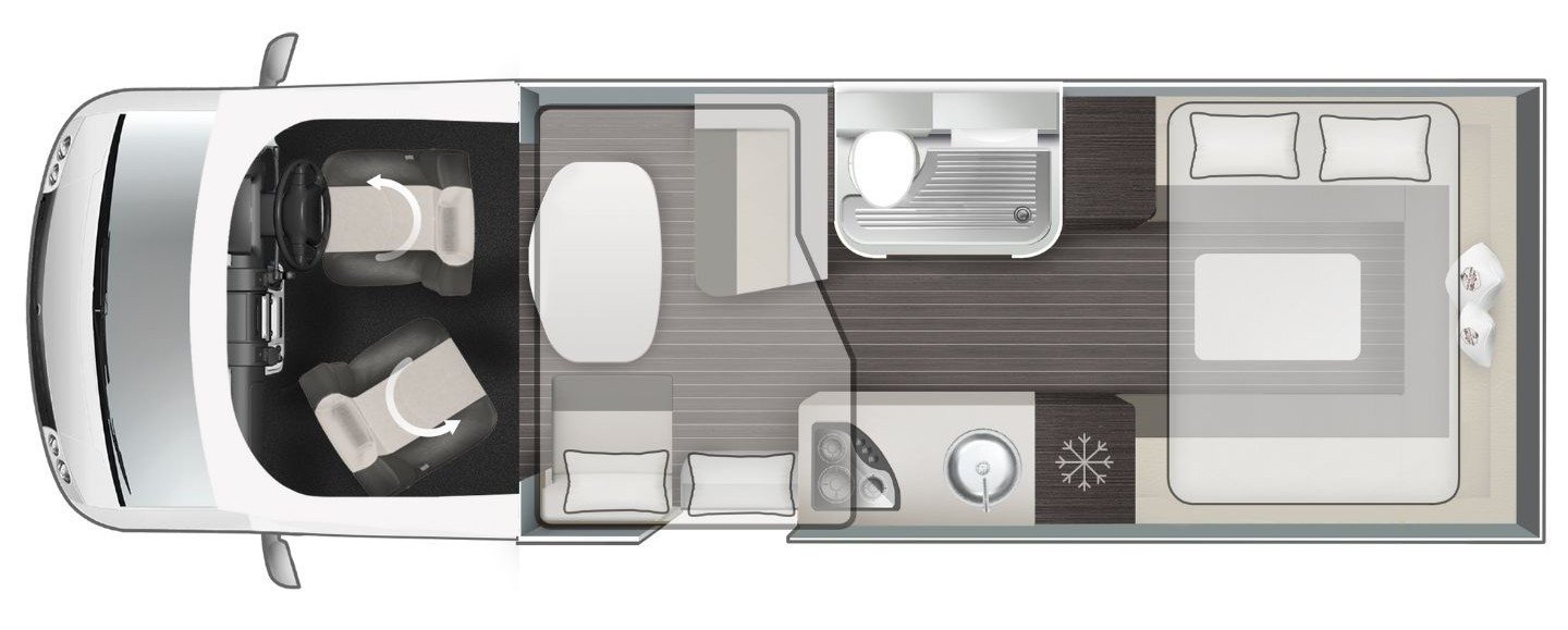 Bring all the features of home to the road in the Marco Polo. This model features a spacious and comfortable rear lounge, making the interior feel open and welcome to the whole family.
