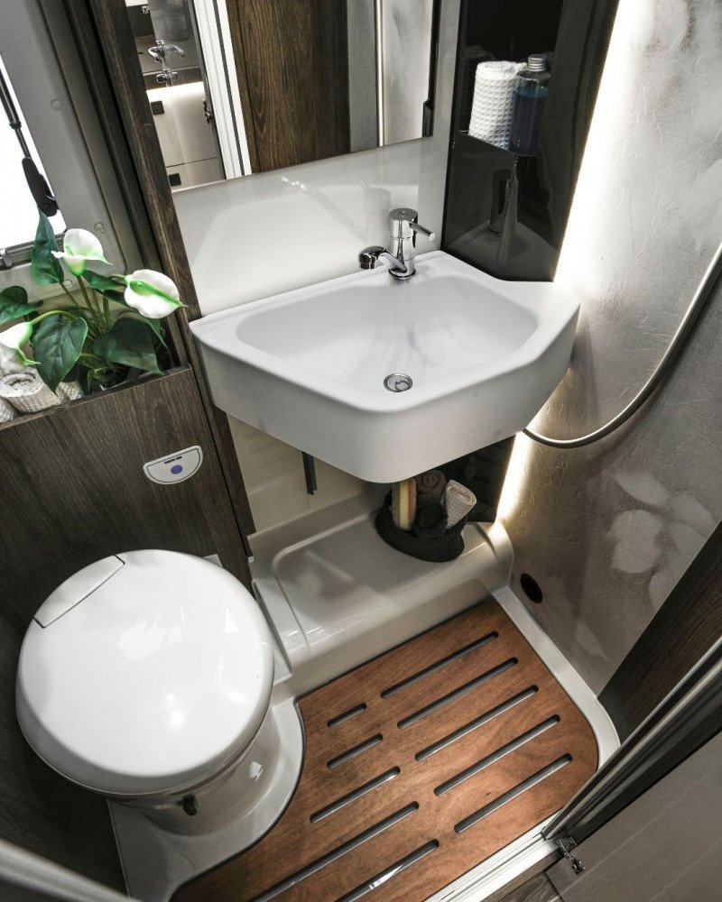 Sleeping in the Marco Polo is comfortable, and easy to set up too. You’ll find two drop-drown double beds – one above the rear lounge, and one closer to the front of the motorhome. These give you plenty of space to sleep on, but easily tuck away during the day and become unnoticeable.